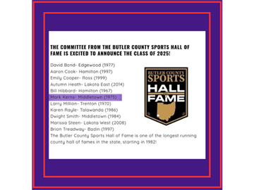 Former Middie Way Vice President Mark Kerns has been selected for the 2025 Butler County Sports Hall of Fame.