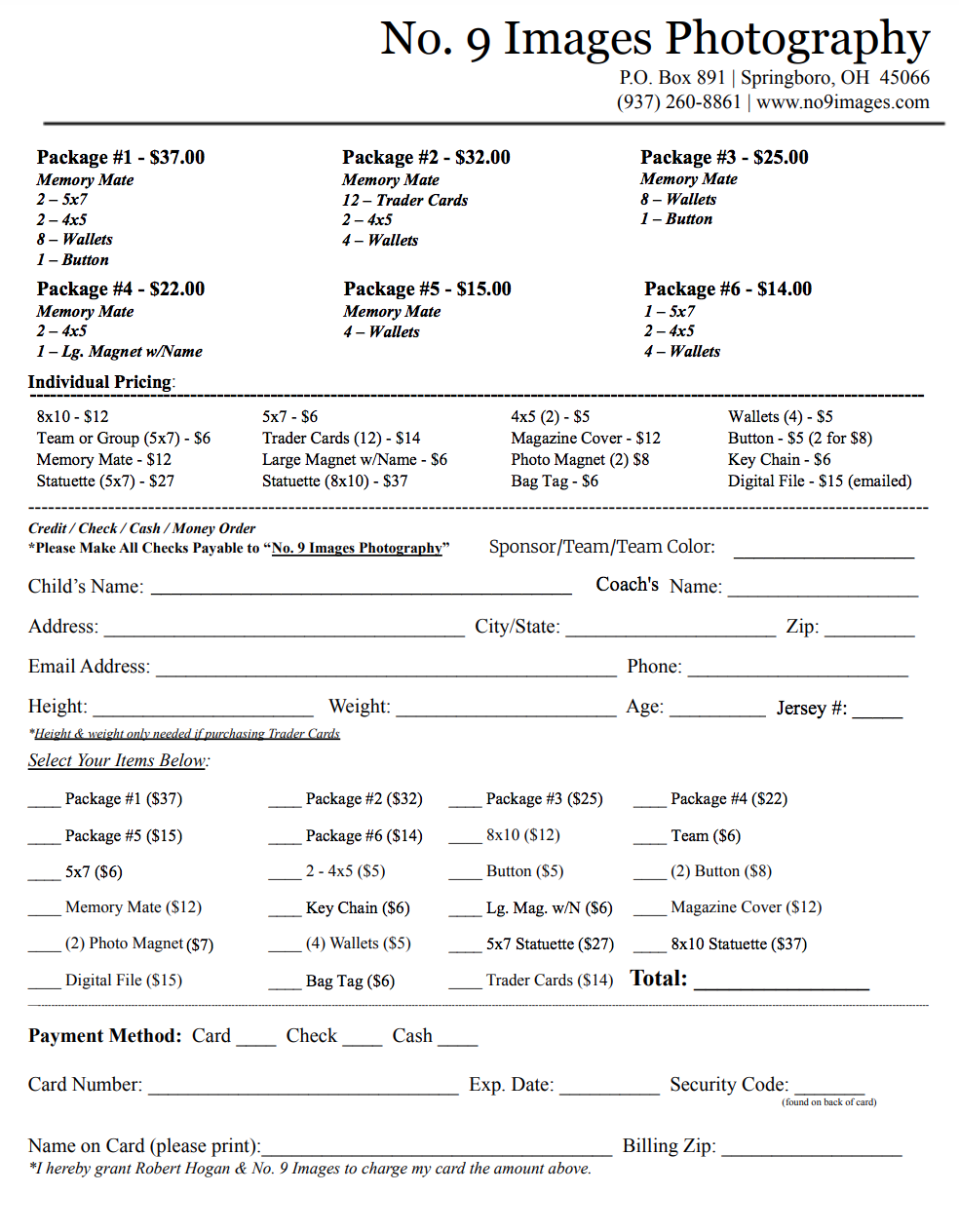 If you wish to order pictures please fill out the picture form and bring in to Opening Day completed.Every player will have their photo taken and receive 1 - 5x7 Picture Order Form